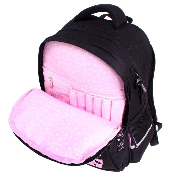 Рюкзак каркасный школьный 38 х 30 х 16 см, эргономичная спинка, Stavia "Фламинго мини", чёрный/розовый