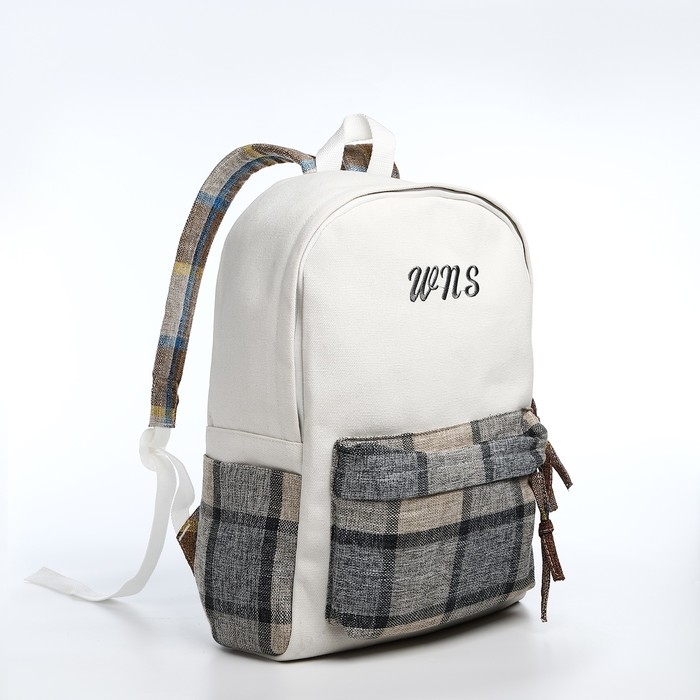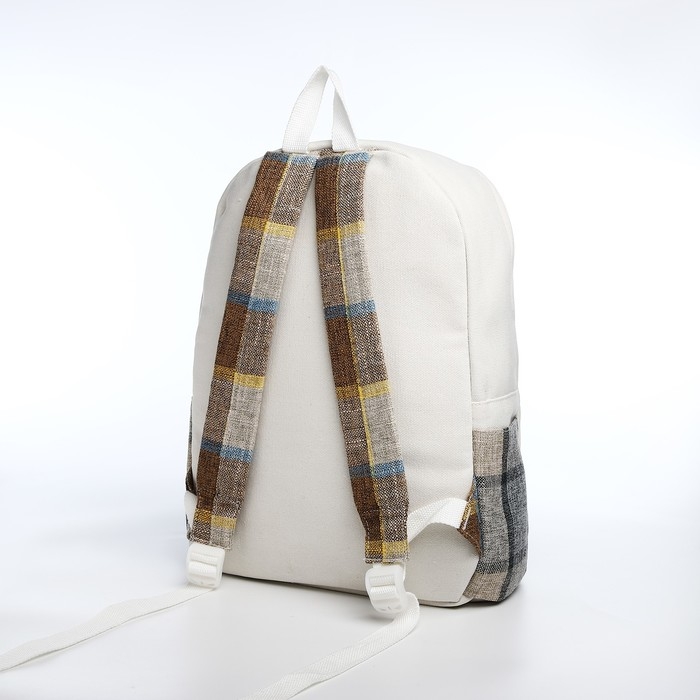 Рюкзак школьный из текстиля, 3 кармана, цвет белый/серый/бежевый