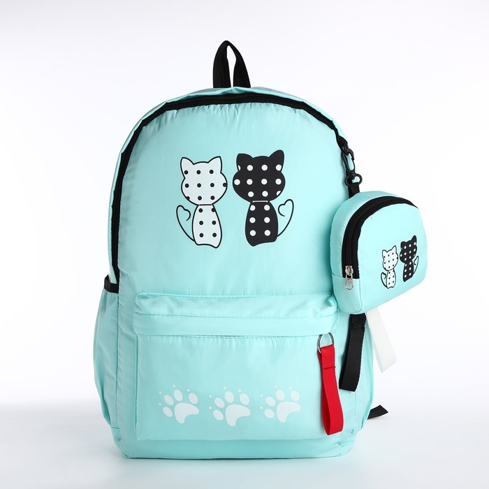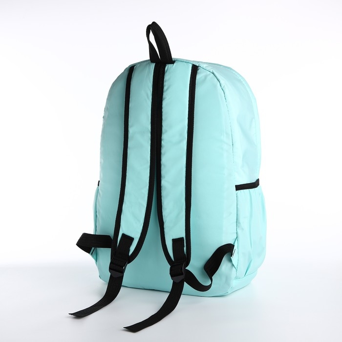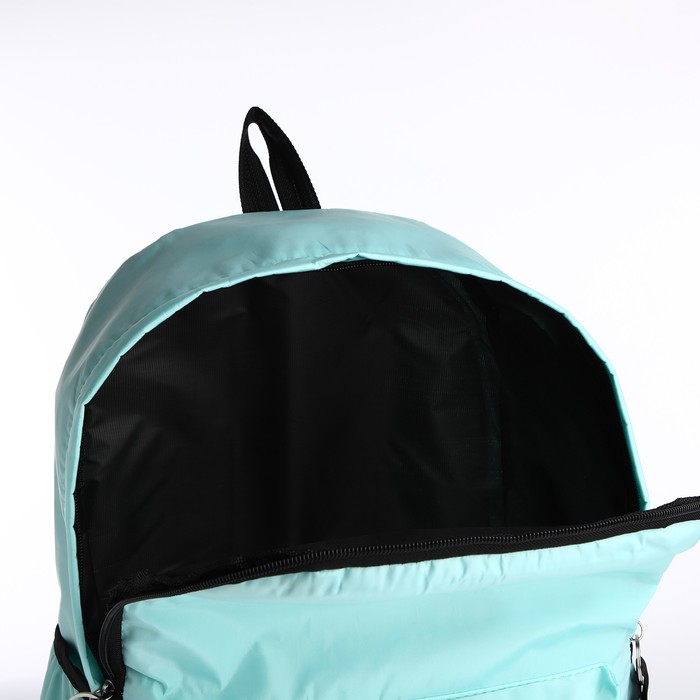 Рюкзак школьный из текстиля, 3 кармана, кошелёк, цвет мятный