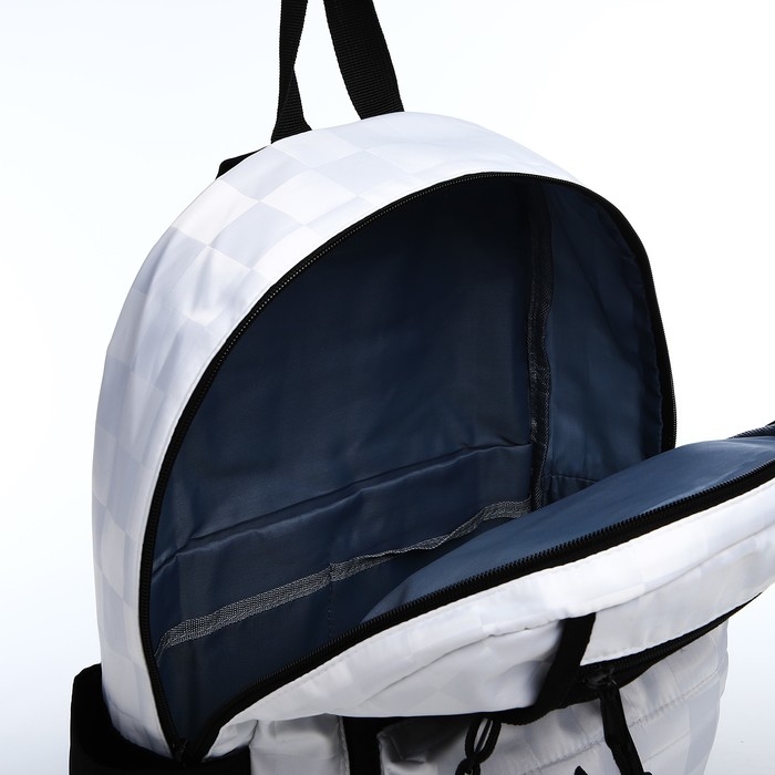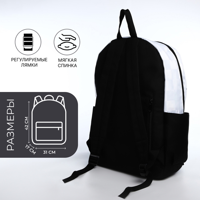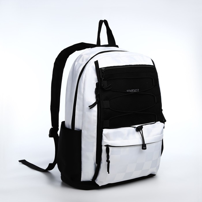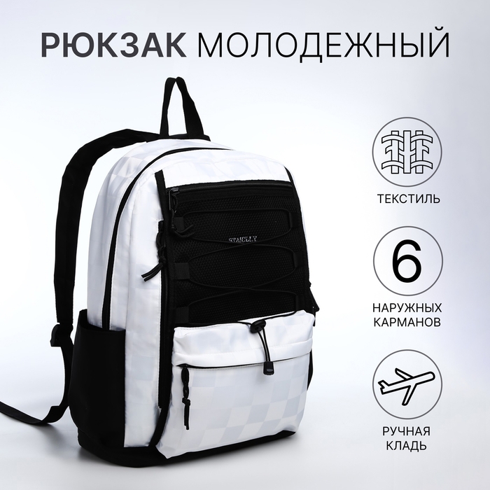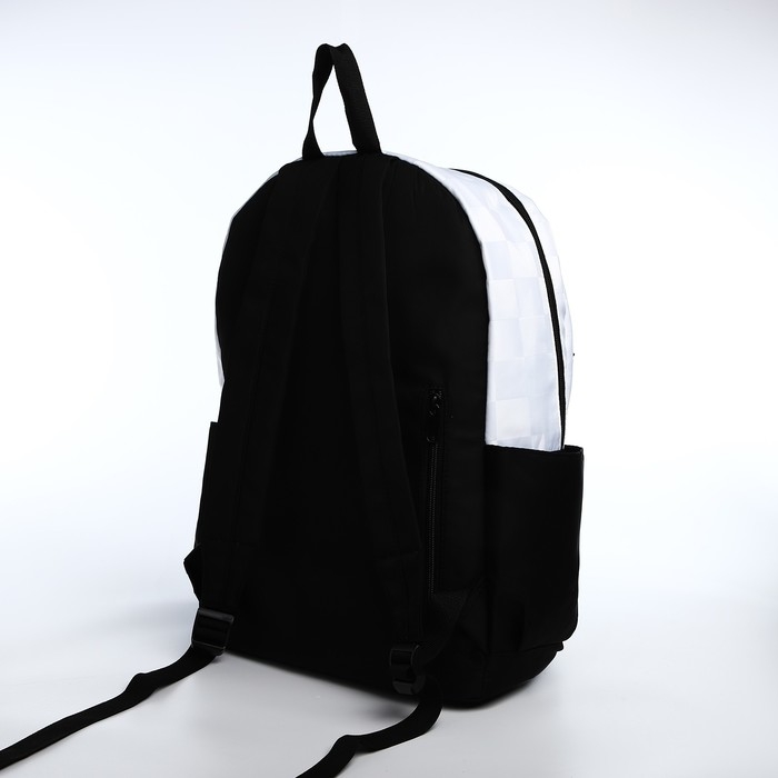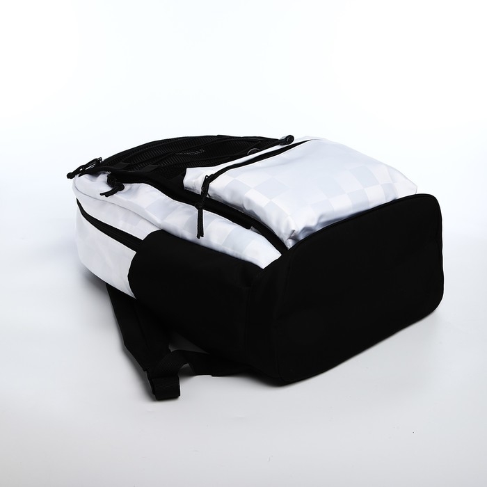 Рюкзак школьный из текстиля, 6 карманов, цвет белый/чёрный