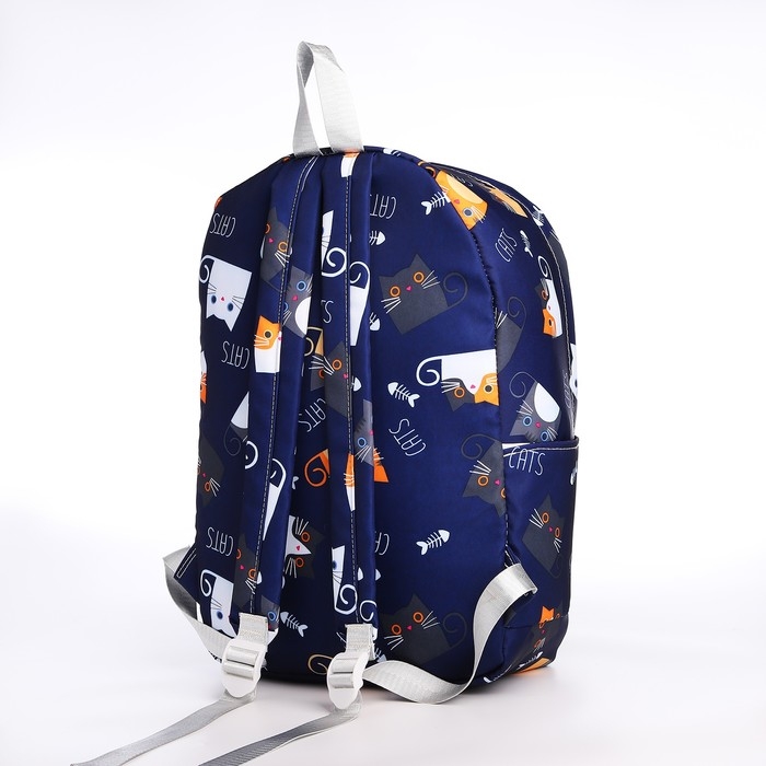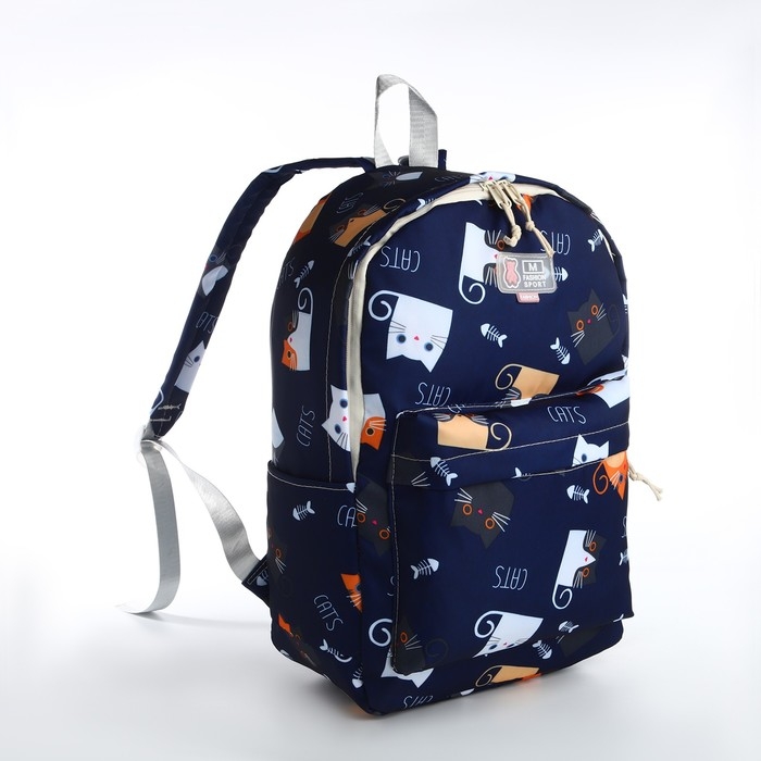 Рюкзак школьный из текстиля на молнии, 3 кармана, цвет синий