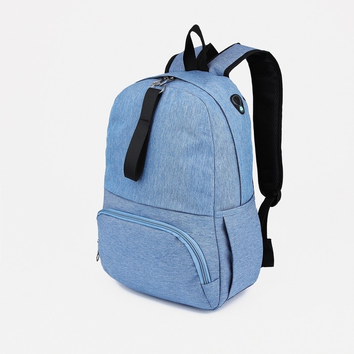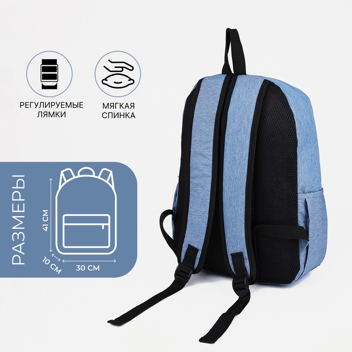 Рюкзак школьный из текстиля на молнии, 3 кармана, FULLDORN, цвет голубой