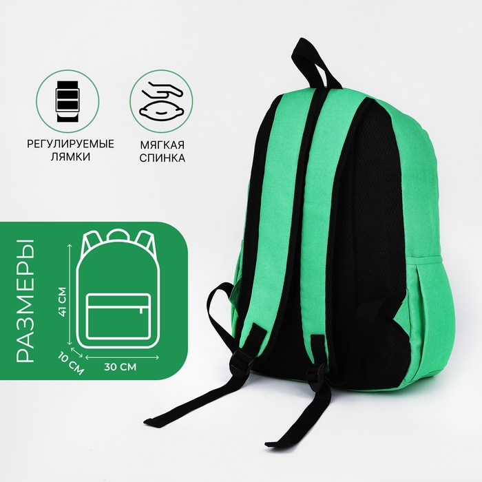 Рюкзак школьный из текстиля на молнии, 3 кармана, FULLDORN, цвет зелёный