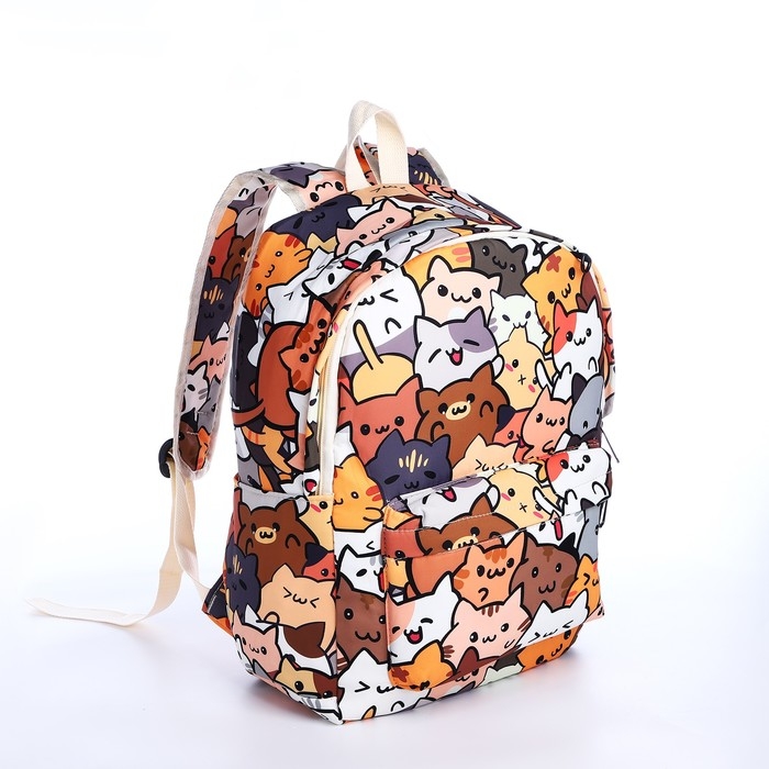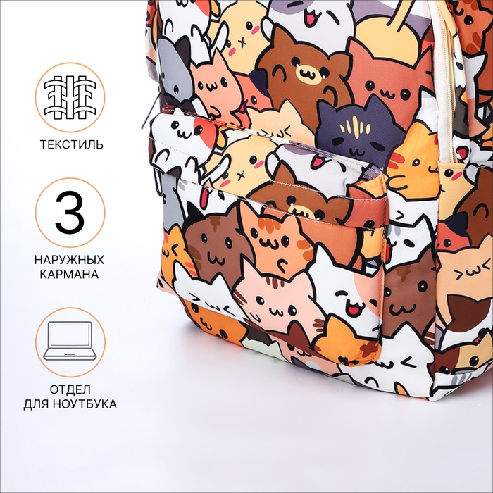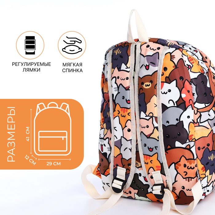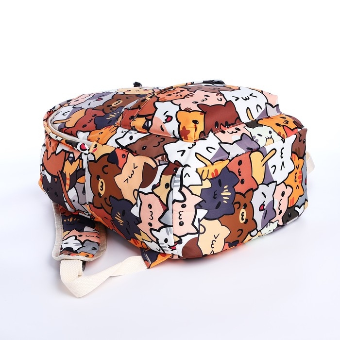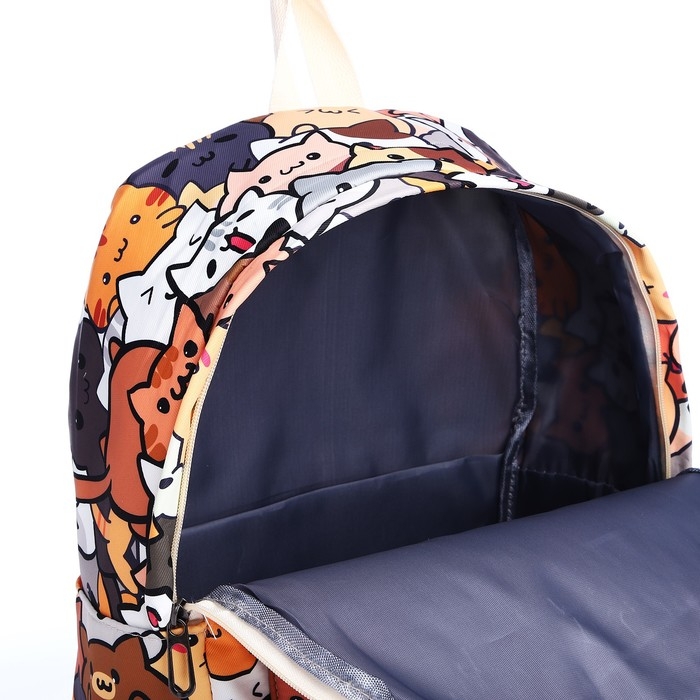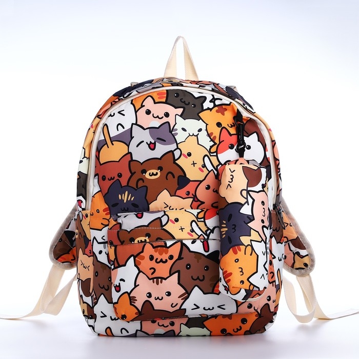Рюкзак школьный из текстиля на молнии, 3 кармана, пенал, цвет коричневый/оранжевый