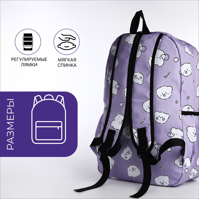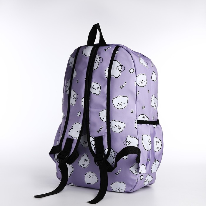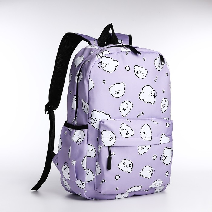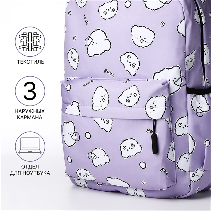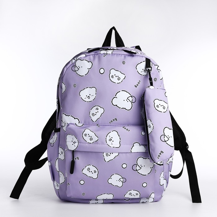 Рюкзак школьный из текстиля на молнии, 3 кармана, пенал, цвет сиреневый