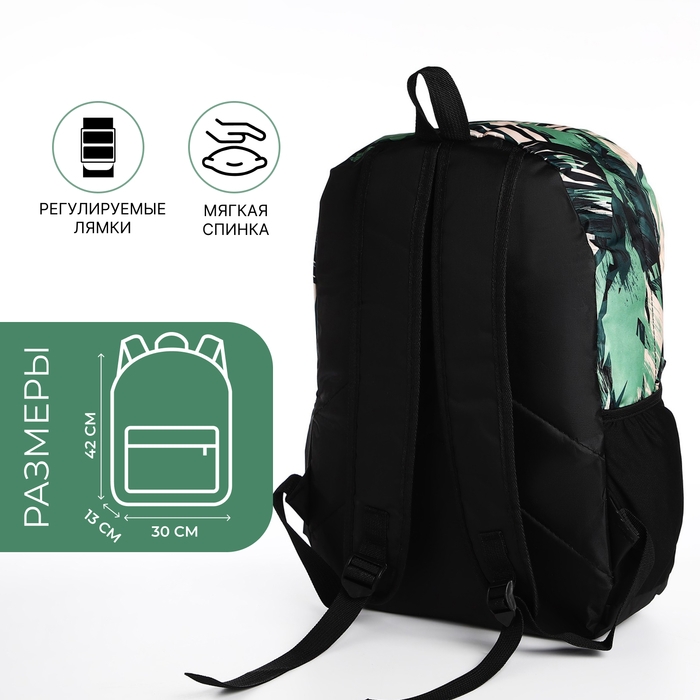 Рюкзак школьный из текстиля на молнии, 3 кармана, зелёный
