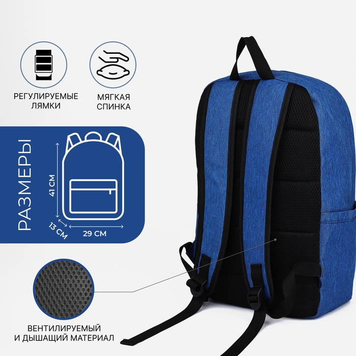 Рюкзак школьный из текстиля на молнии, 4 кармана, FULLDORN, цвет синий