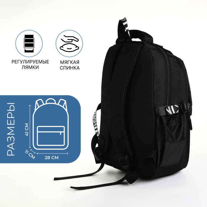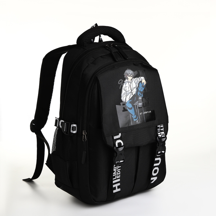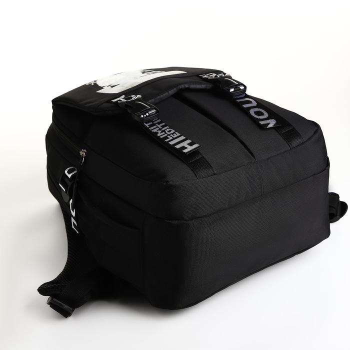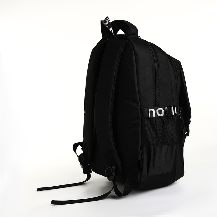Рюкзак школьный из текстиля на молнии, 5 карманов, цвет чёрный