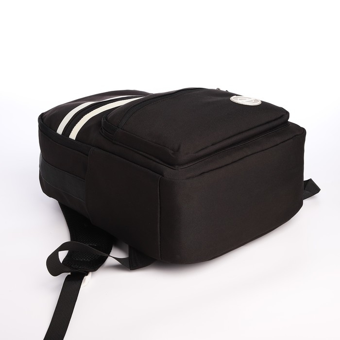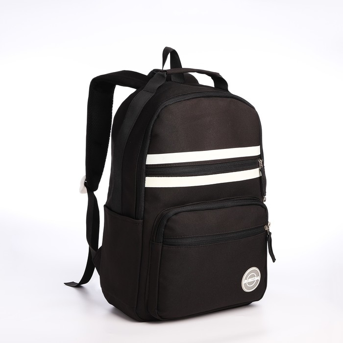 Рюкзак школьный из текстиля на молнии, 5 карманов, цвет чёрный