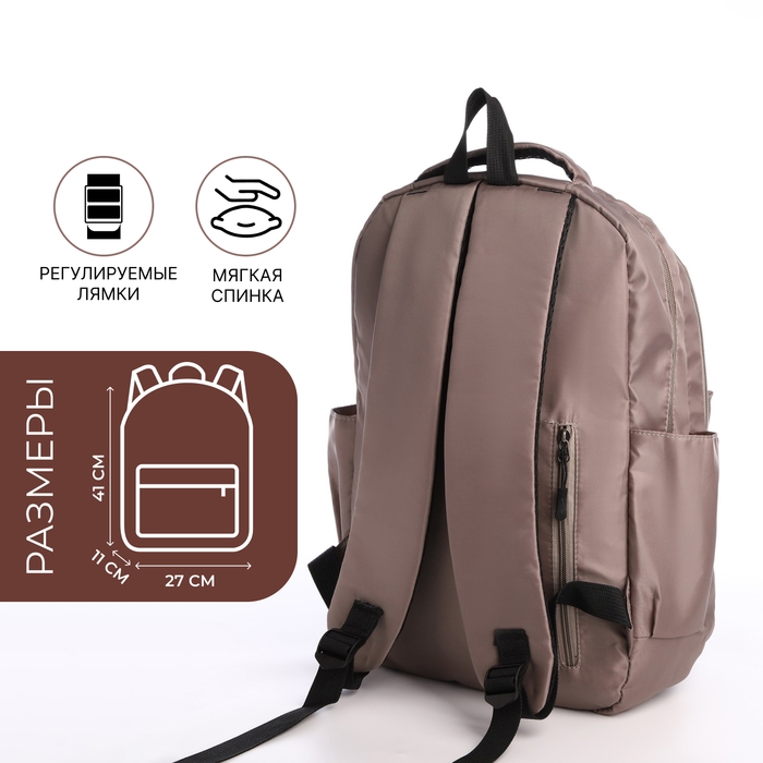 Рюкзак школьный из текстиля на молнии, 5 карманов, цвет коричневый