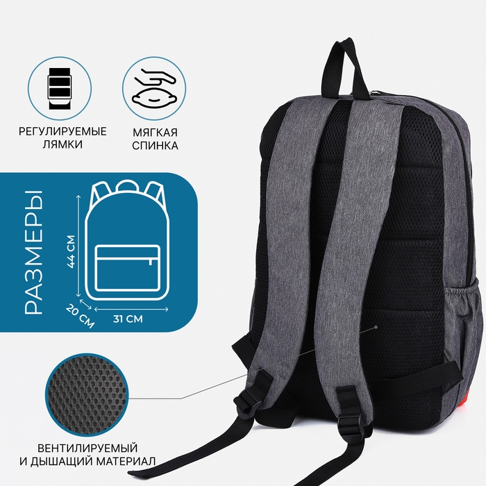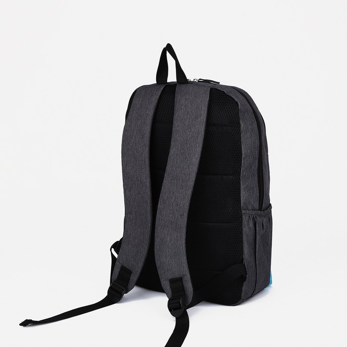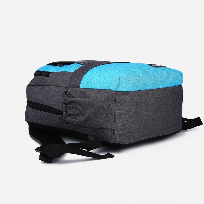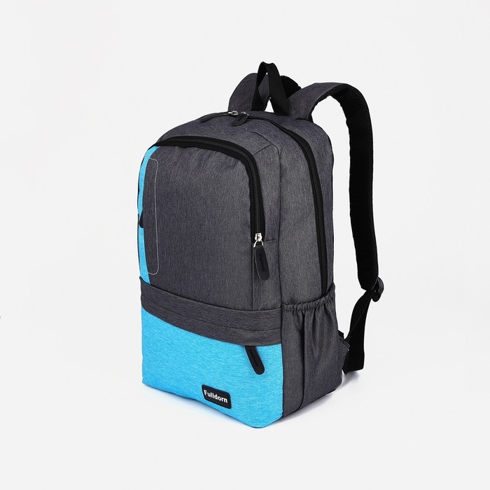 Рюкзак школьный из текстиля на молнии, 5 карманов, FULLDORN, цвет серый/голубой