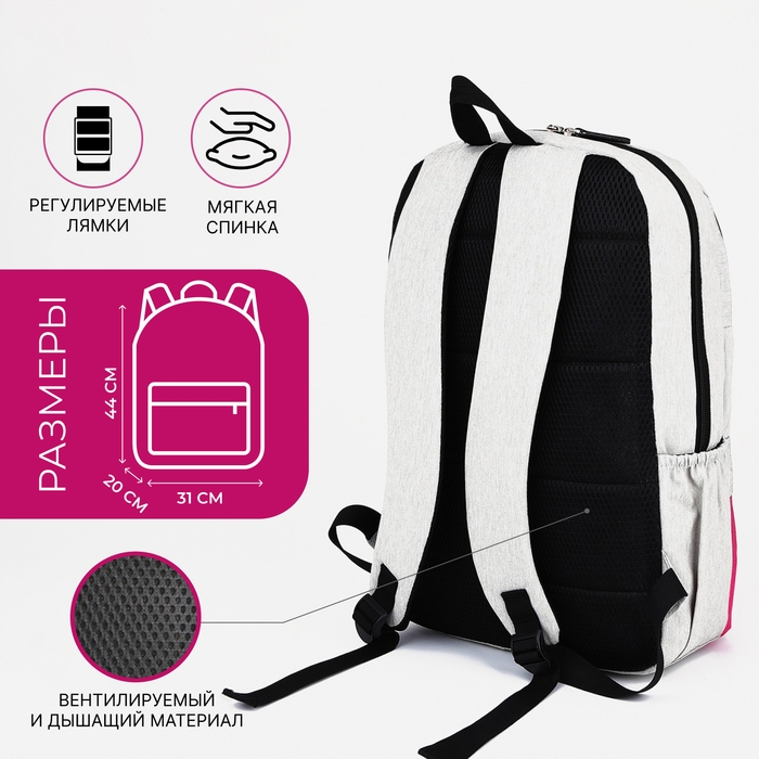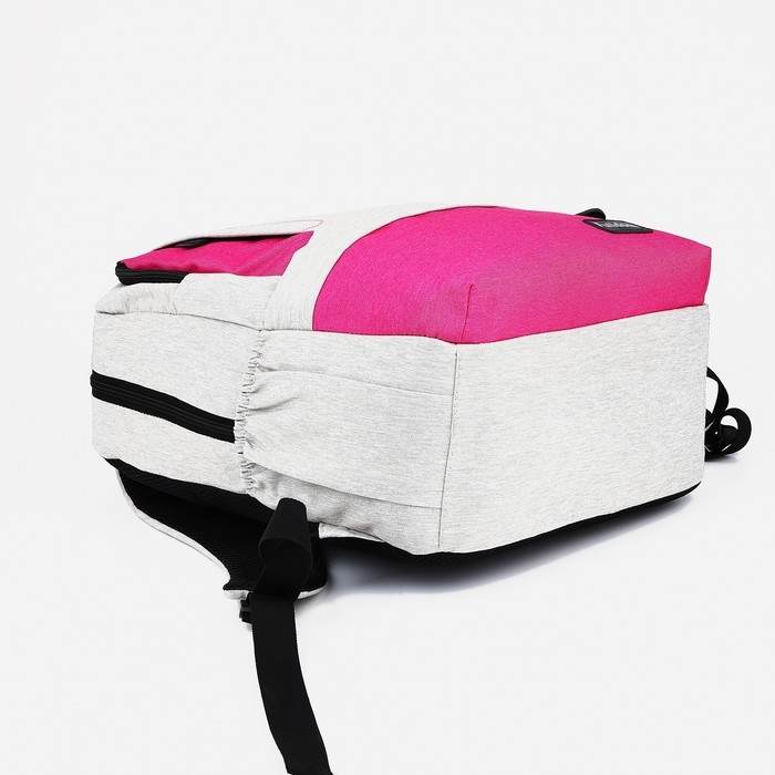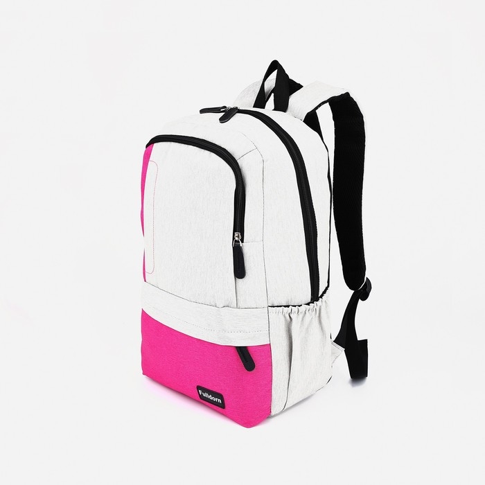 Рюкзак школьный из текстиля на молнии, 5 карманов, FULLDORN, цвет серый/розовый