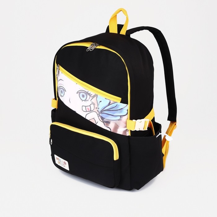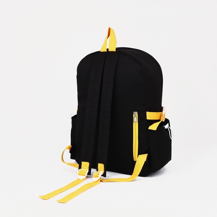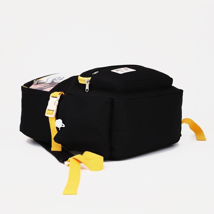 Рюкзак школьный из текстиля на молнии, 6 карманов, цвет чёрный