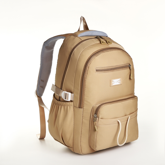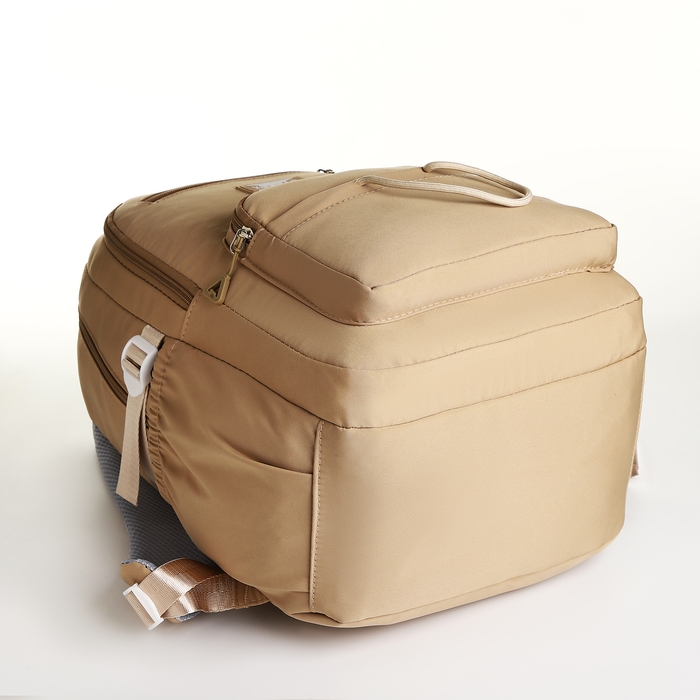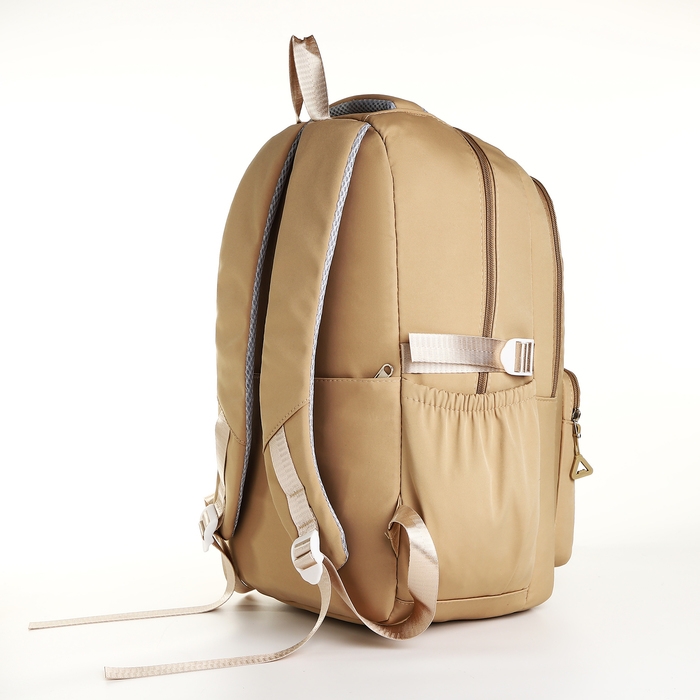 Рюкзак школьный из текстиля на молнии, 7 карманов, цвет коричневый
