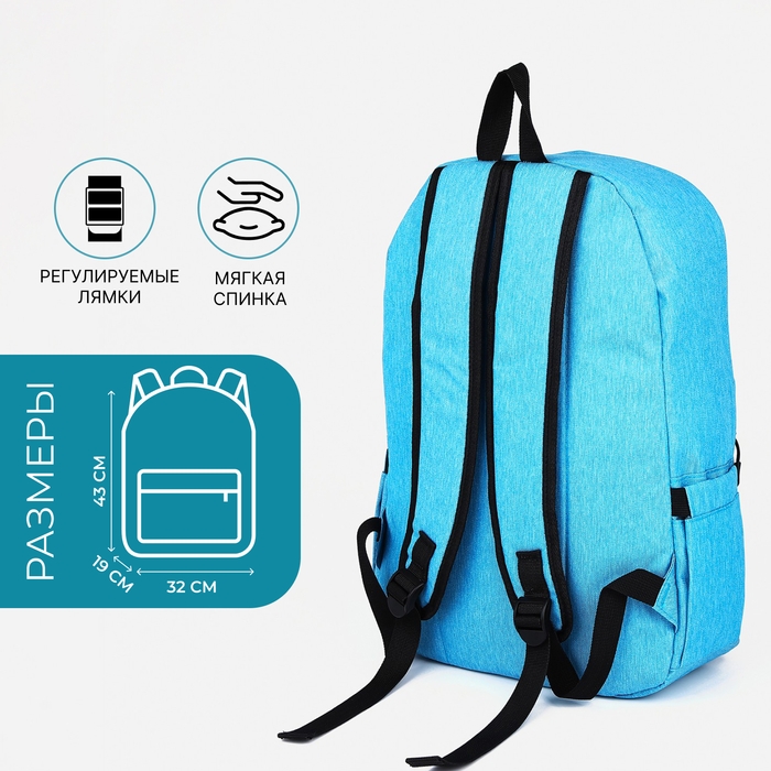 Рюкзак школьный из текстиля на молнии, FULLDORN, наружный карман, цвет голубой