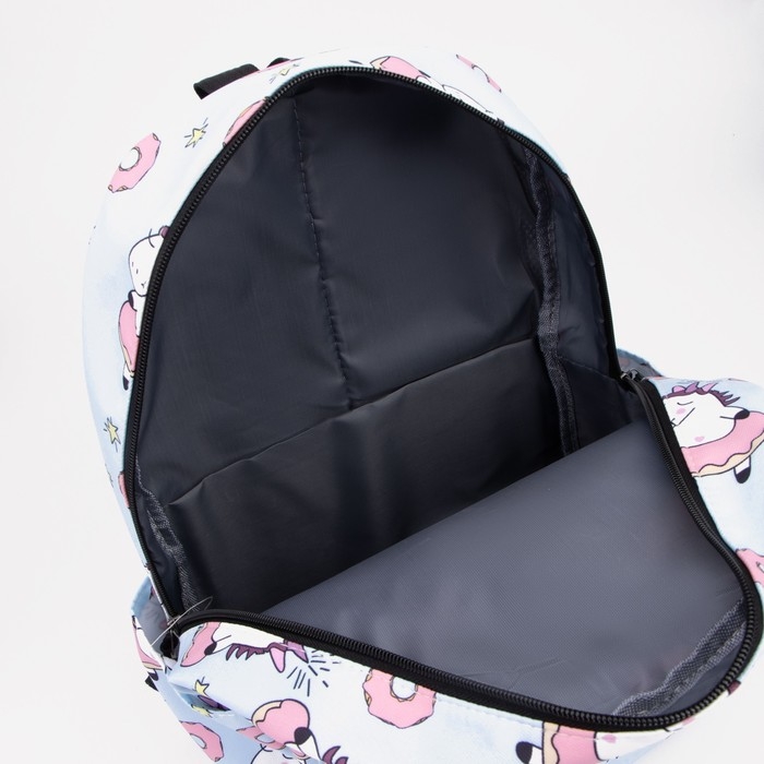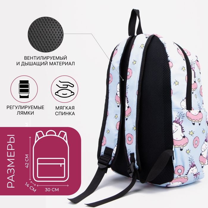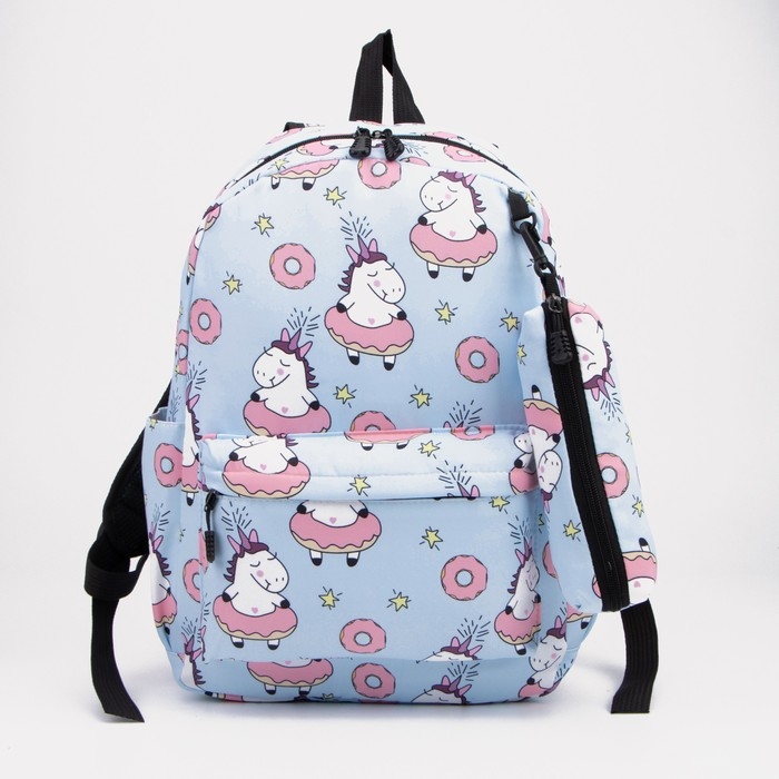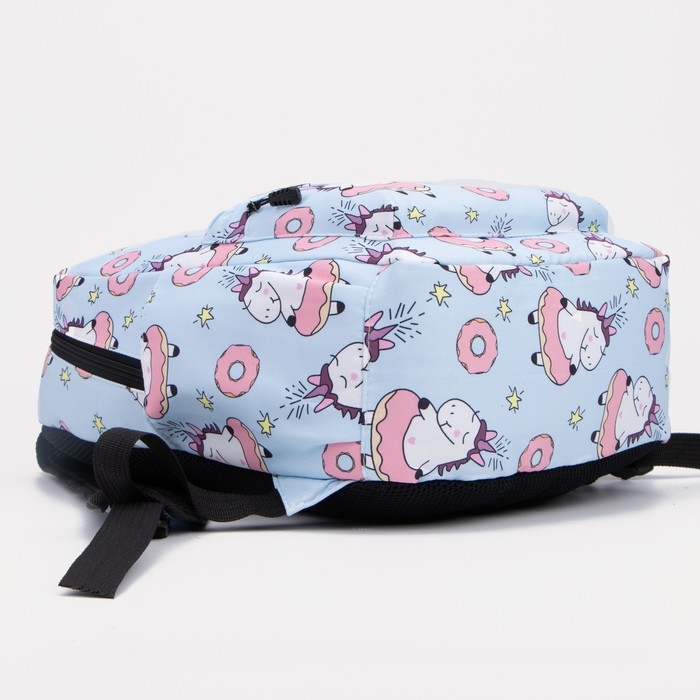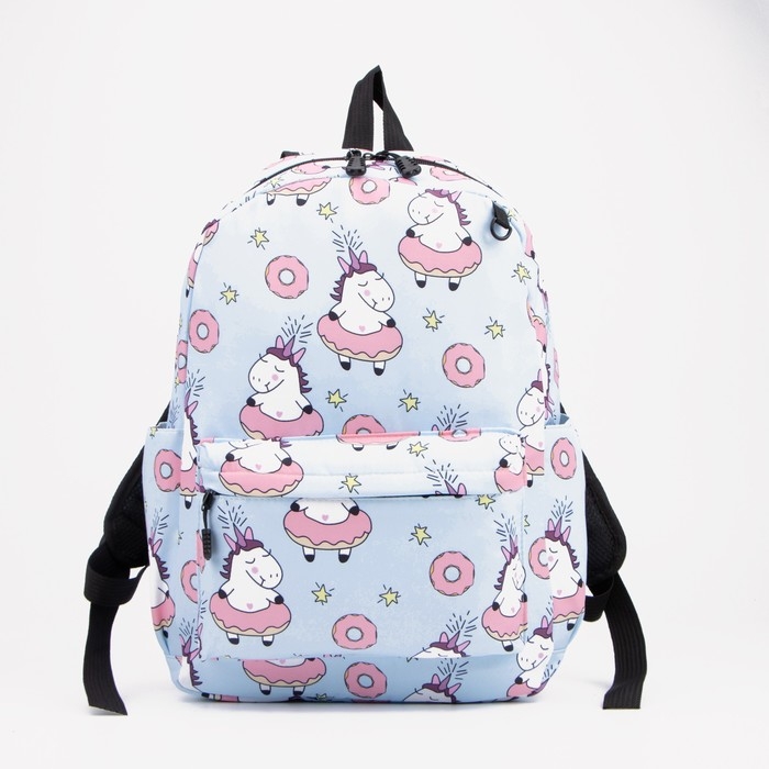 Рюкзак школьный из текстиля на молнии, наружный карман, пенал, цвет голубой