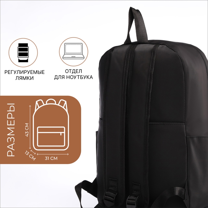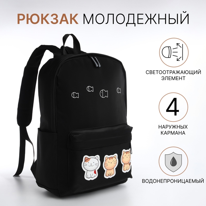Рюкзак школьный из текстиля на молнии, водонепроницаемый, 4 кармана, цвет чёрный