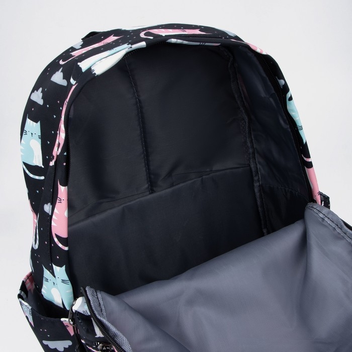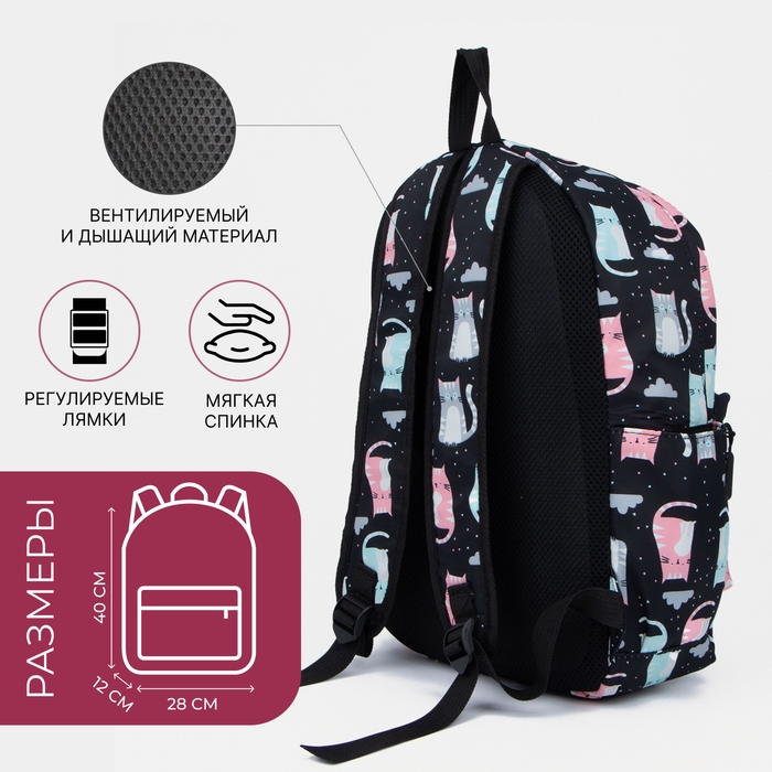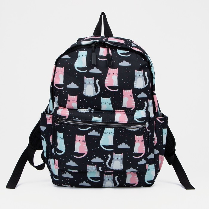 Рюкзак школьный из текстиля, наружный карман, цвет чёрный