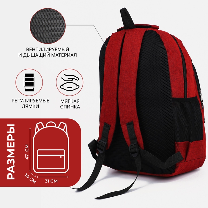 Рюкзак школьный на молнии, 2 наружных кармана, цвет бордовый