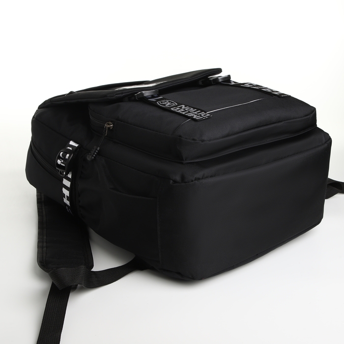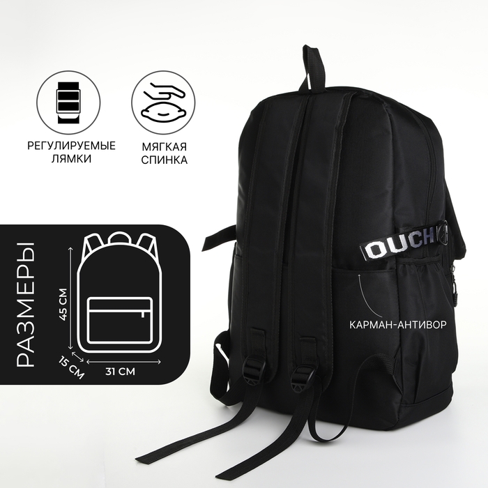 Рюкзак школьный на молнии, 2 наружных кармана, цвет чёрный