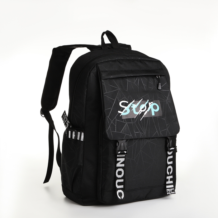 Рюкзак школьный на молнии, 3 кармана, цвет чёрный
