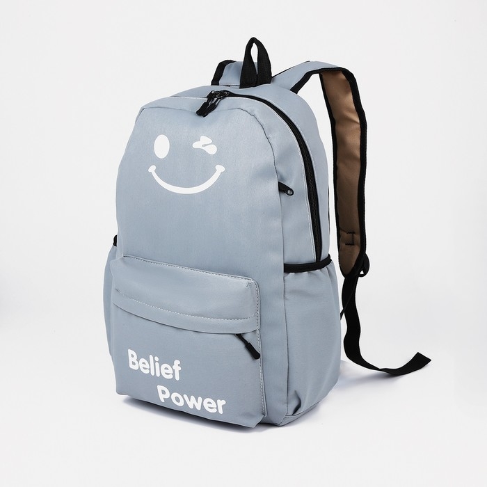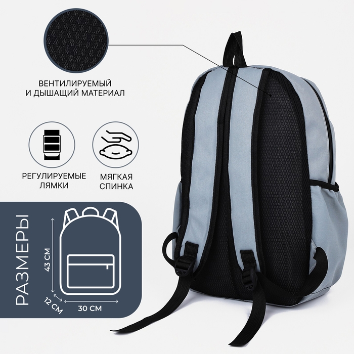 Рюкзак школьный на молнии, 3 наружных кармана, кошелёк, цвет серый