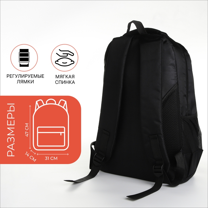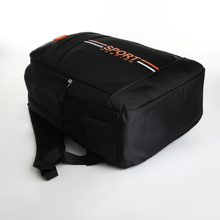 Рюкзак школьный на молнии, 4 кармана, цвет чёрный/оранжевый