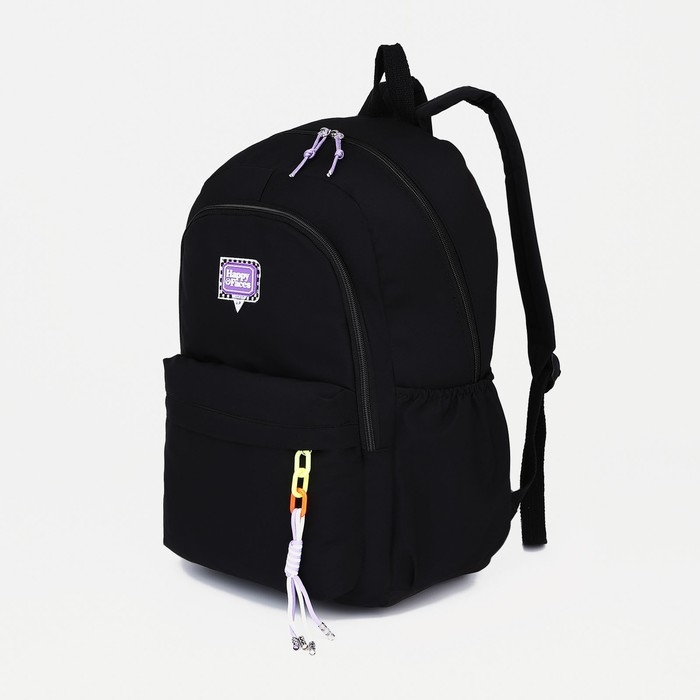 Рюкзак школьный на молнии, 4 наружных кармана, цвет чёрный