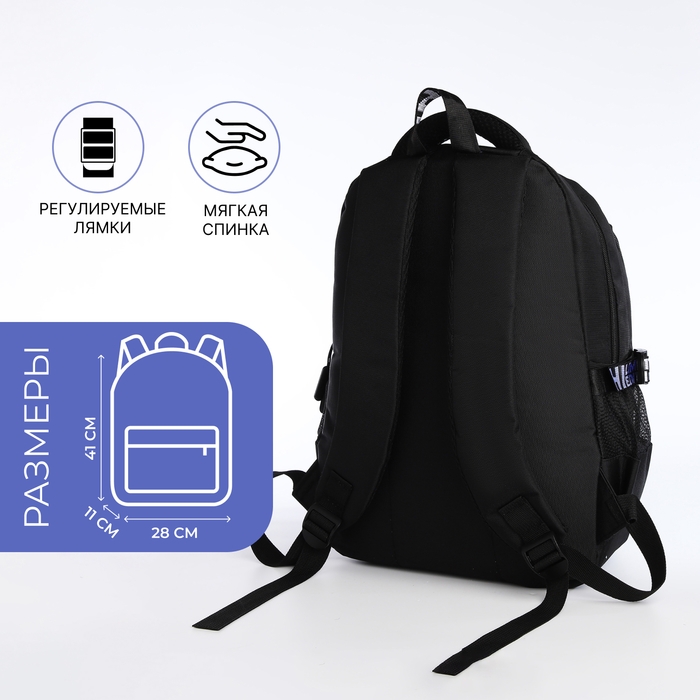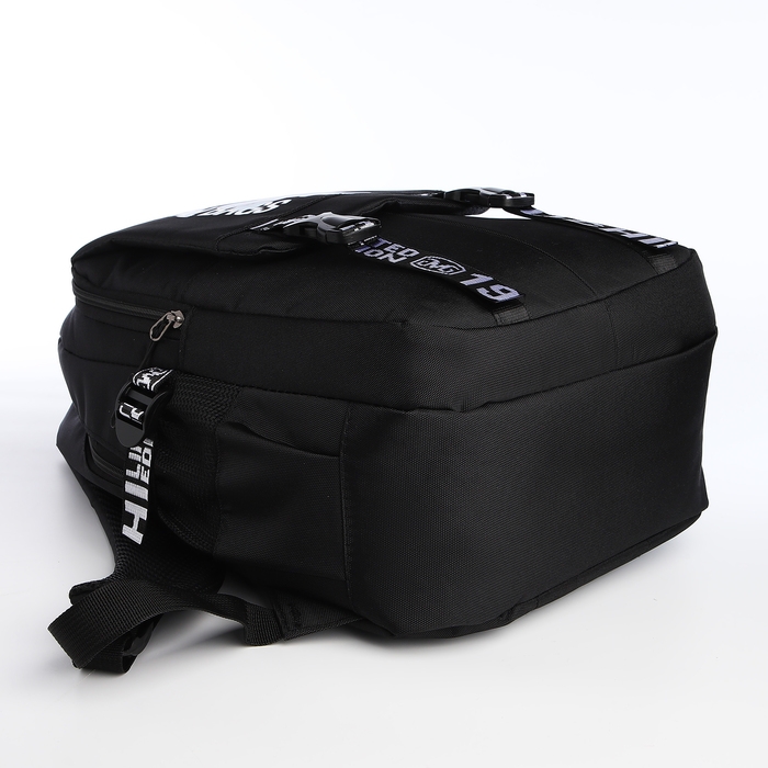 Рюкзак школьный на молнии, 5 карманов, цвет чёрный