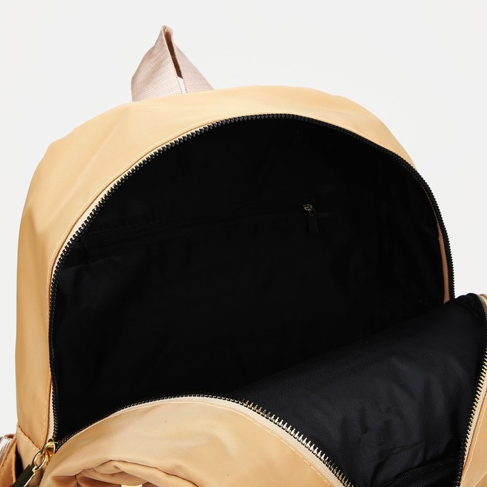 Рюкзак школьный на молнии из текстиля, 2 кармана, цвет бежевый