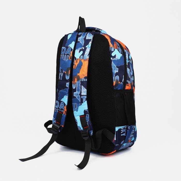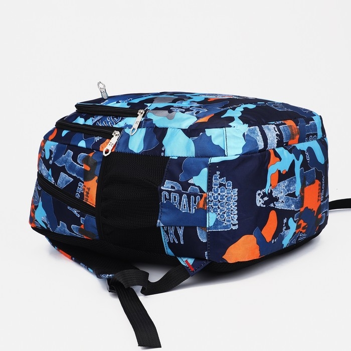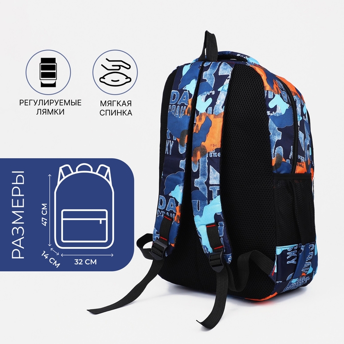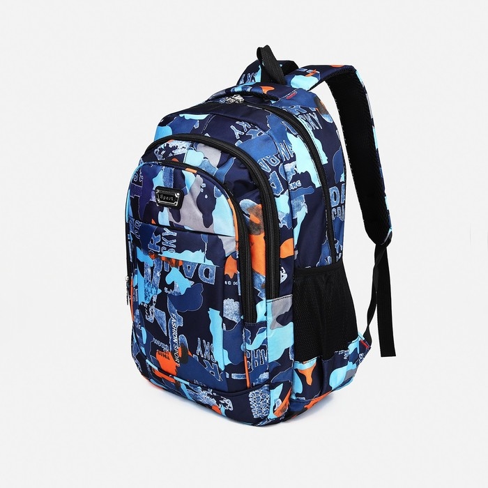 Рюкзак школьный на молнии из текстиля, 2 кармана, цвет синий