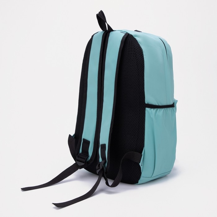 Рюкзак школьный на молнии из текстиля, 3 кармана, цвет бирюзовый
