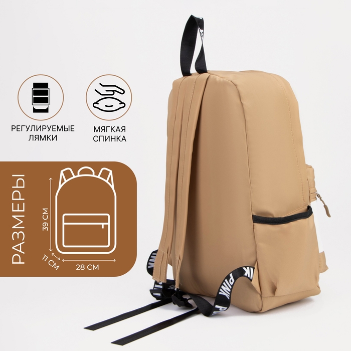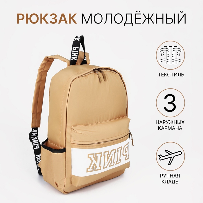 Рюкзак школьный на молнии, наружный карман, 2 боковых кармана, цвет бежевый