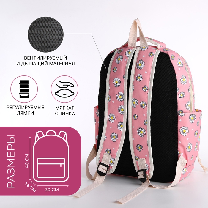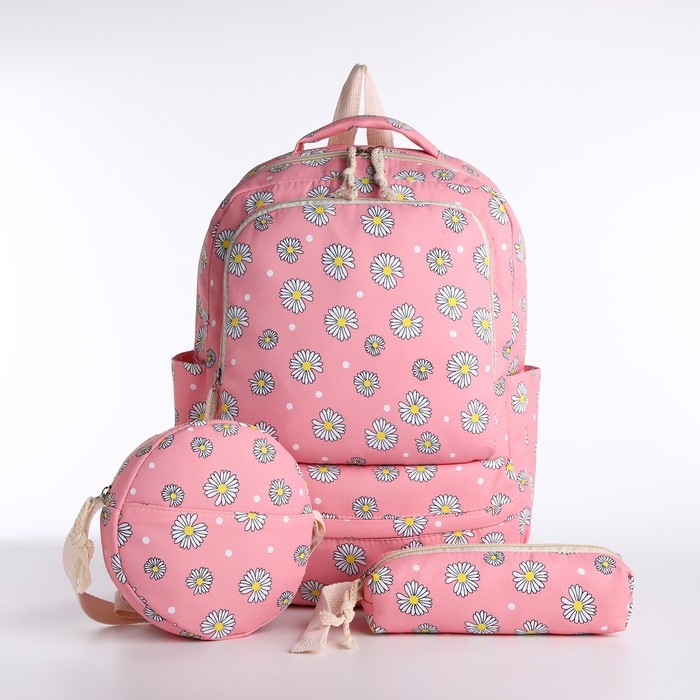 Рюкзак школьный на молнии, сумка, косметичка, цвет розовый