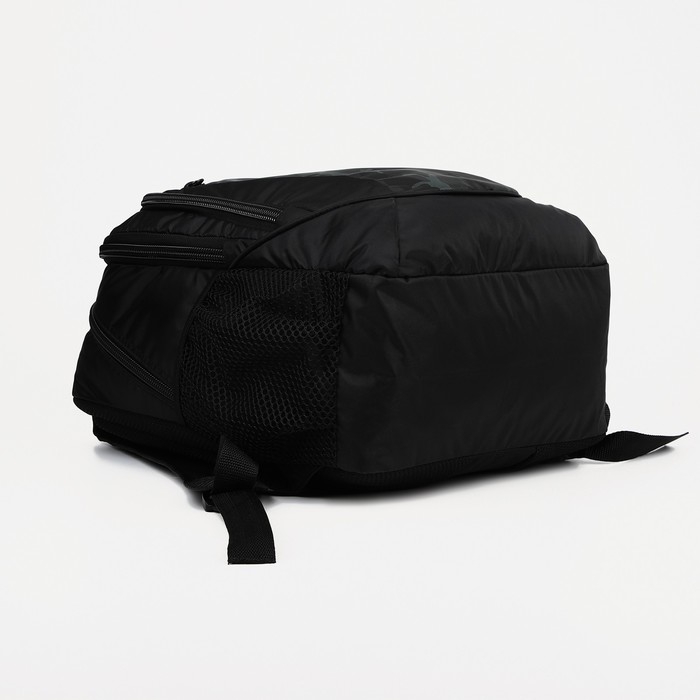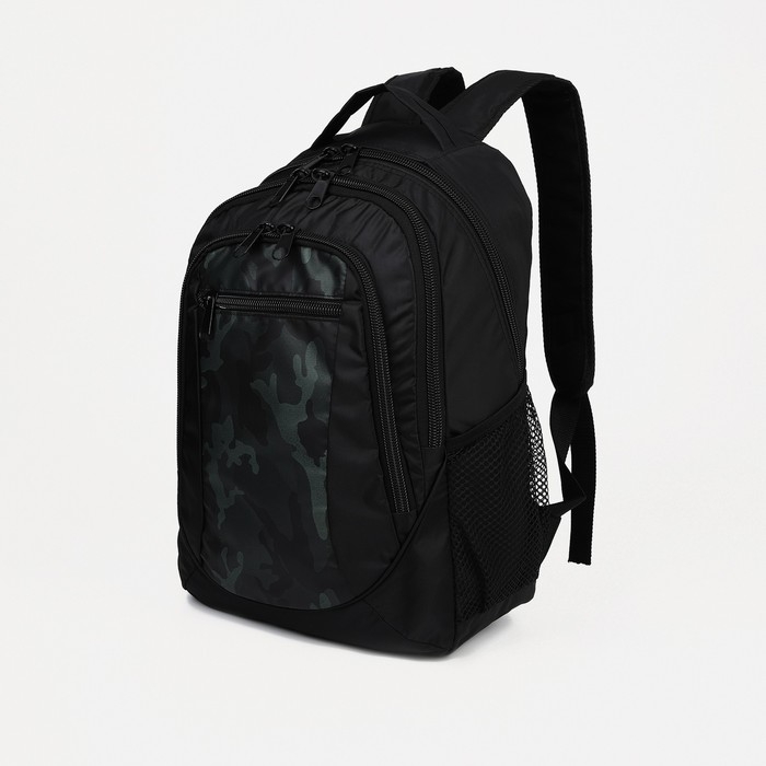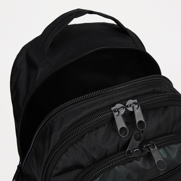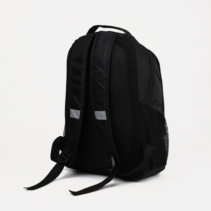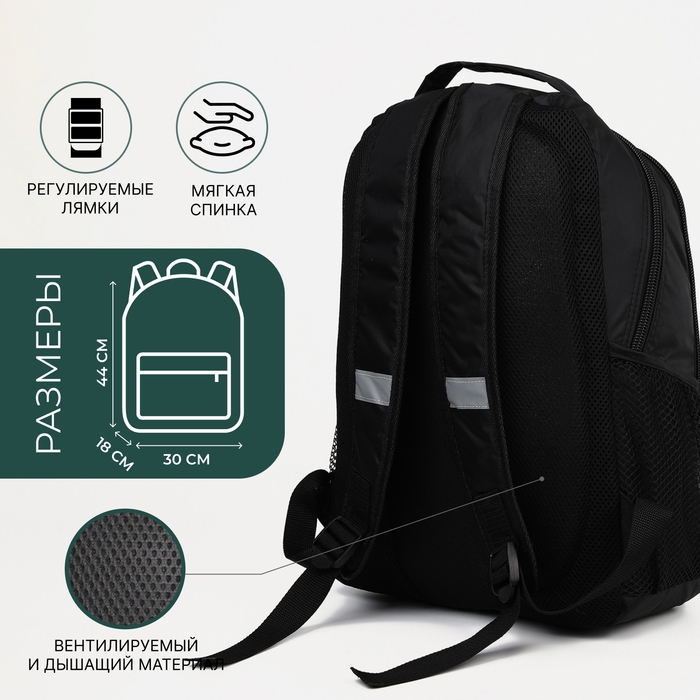 Рюкзак школьный со светоотражающими элементами, «Сакси», 2 отдела на молниях, 4 наружных кармана, цвет чёрный/зелёный