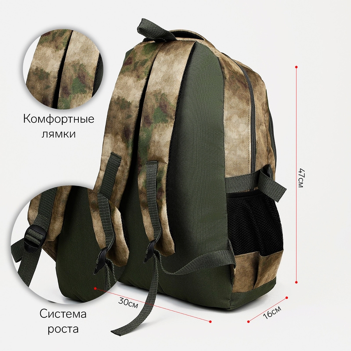 Рюкзак туристический, 22 л, 2 отдела на молниях, 5 наружных карманов, «ЗФТС», цвет зелёный