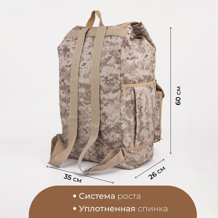 Рюкзак туристический, 55 л, отдел на шнурке, 3 наружных кармана, «ЗФТС», цвет бежевый