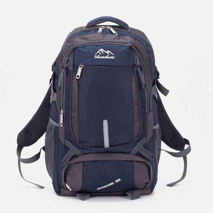 Рюкзак туристический на молнии с расширением, 2 отдела, 4 кармана, цвет синий