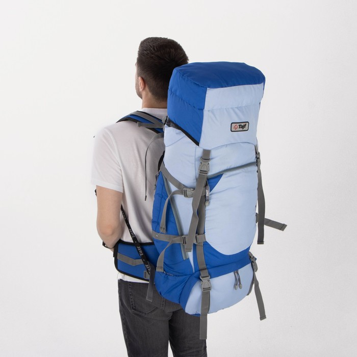 Рюкзак туристический, Taif, 65 л, отдел на шнурке, 2 наружных кармана, 2 боковых кармана, цвет голубой