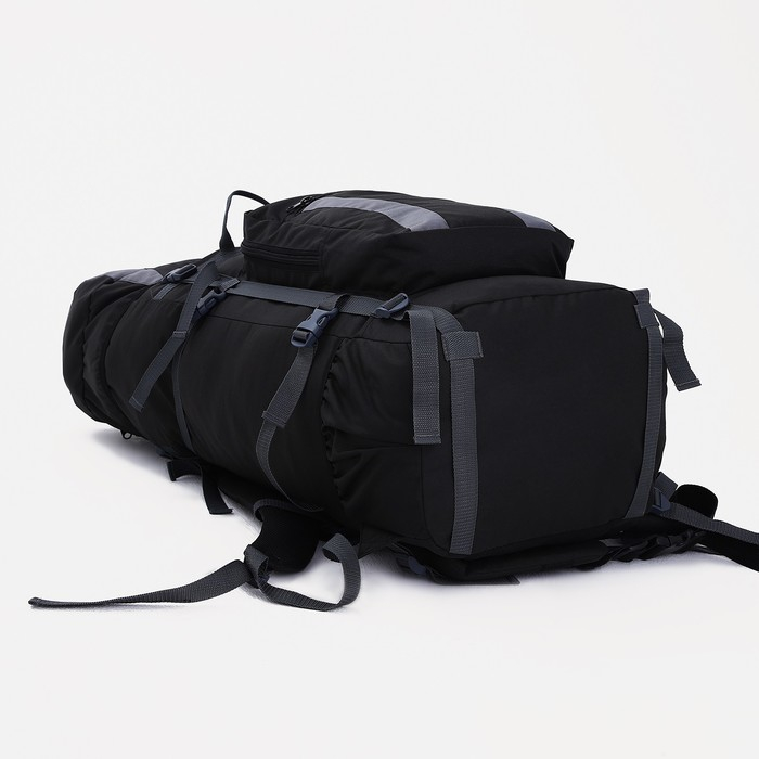 Рюкзак туристический, Taif, 90 л, отдел на шнурке, наружный карман, 2 боковых сетки, цвет чёрный/серый