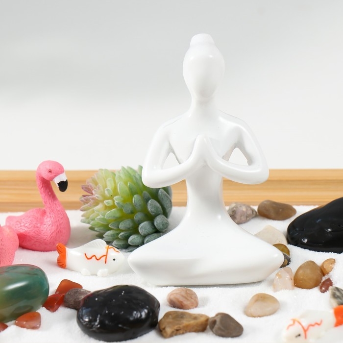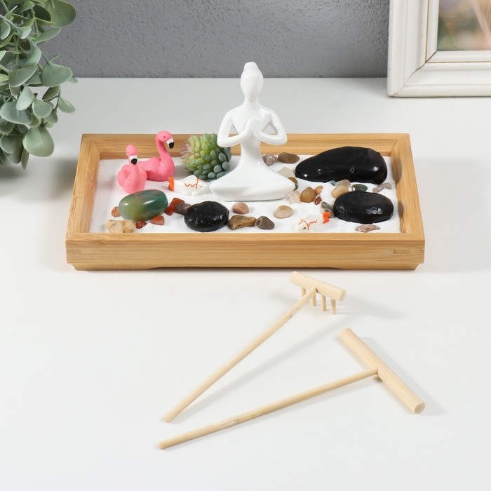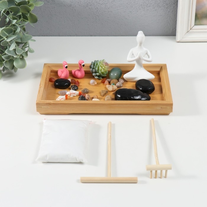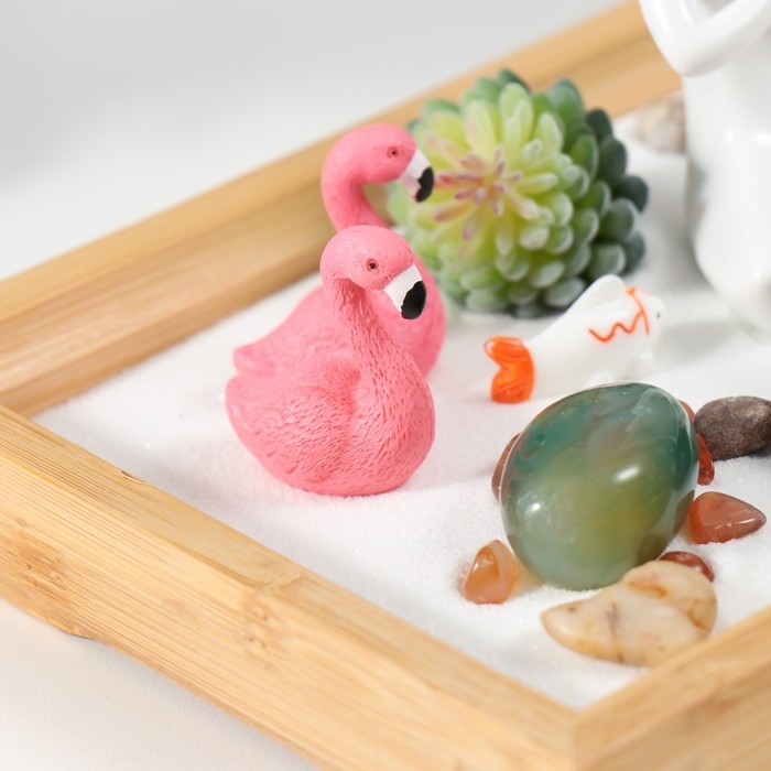 Сад камней Дзен "Будда и фламинго" белый песок 2,5х21,5х13 см