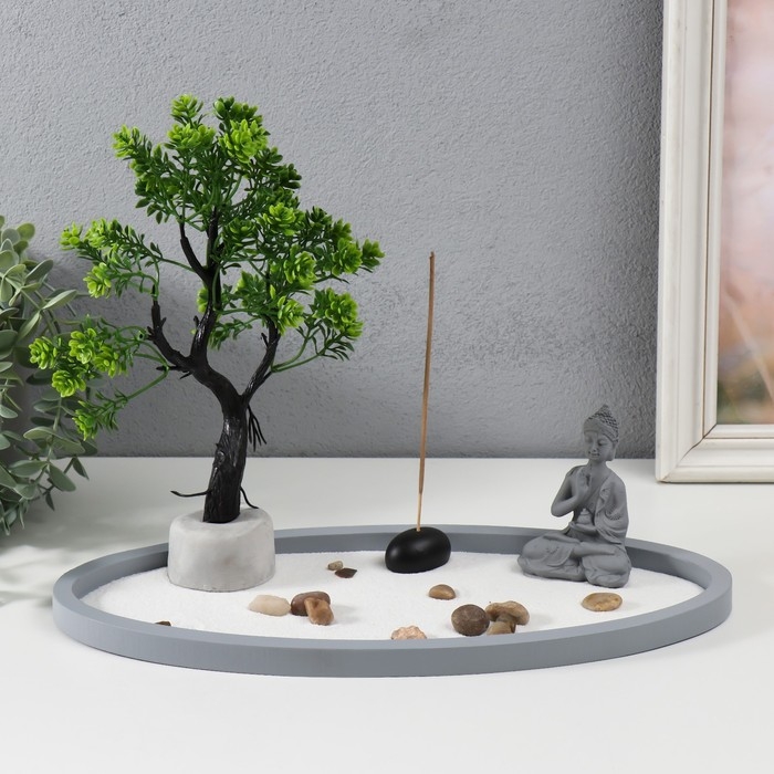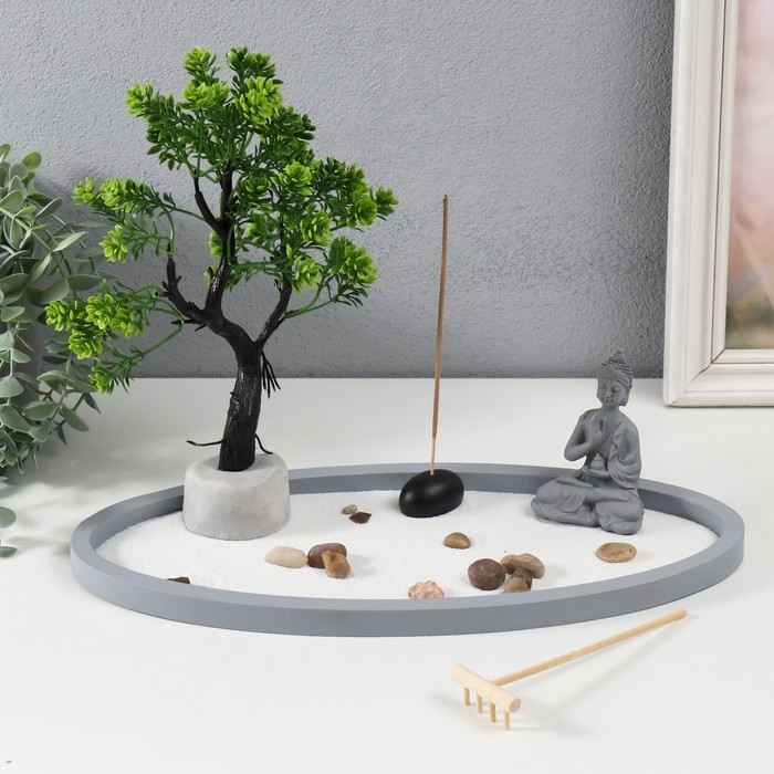 Сад камней Дзен "Будда медитация в саду" песок+аромапалочка 22,5х34,5х15,7 см
