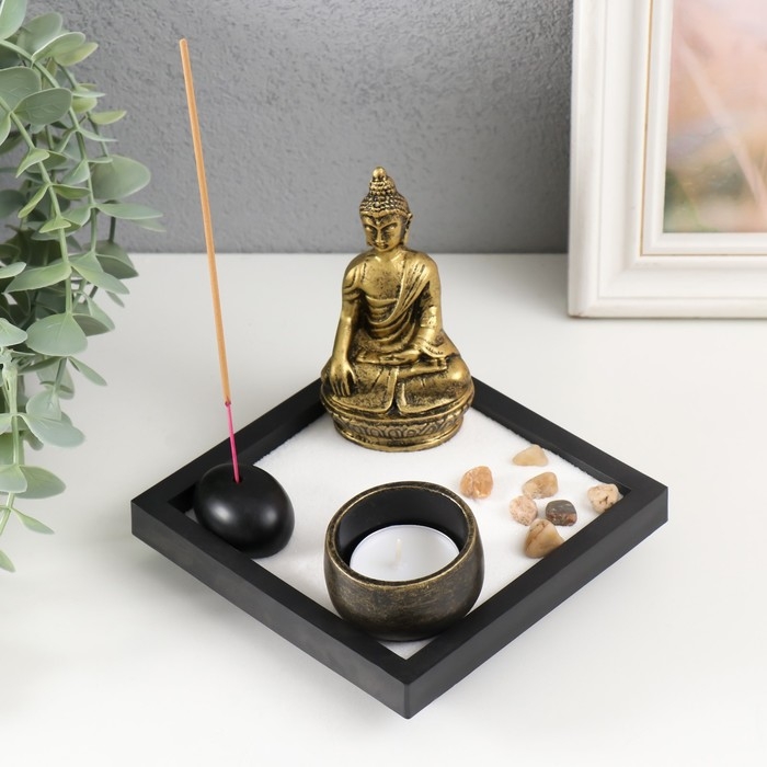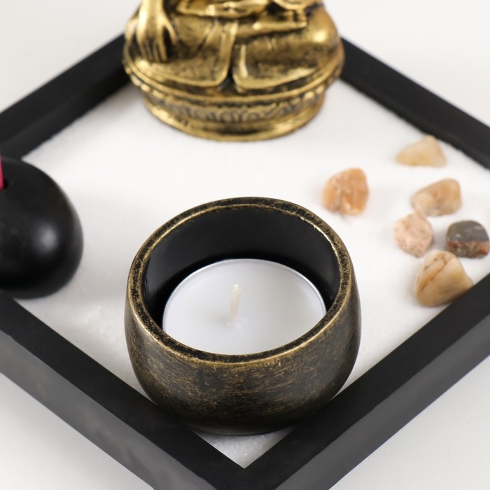 Сад камней Дзен "Будда" песок+камни+подсвечник+подставка 3х12,5х12,5 см