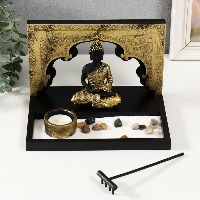 Сад камней Дзен "Будда во дворце у золотой арки" песок+свеча 21х16х14 см