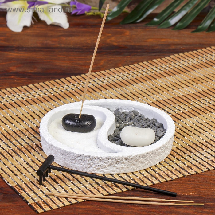 Сад камней Дзен "Инь-ян" белый, песок белый и чёрный + аромапалочки 3 шт 2,5х15,5х15,5 см