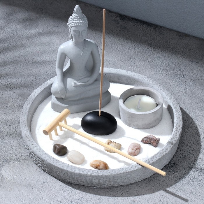 Сад камней с подставкой для благовоний "Сад", 17,5х17,5х14см, бетон
