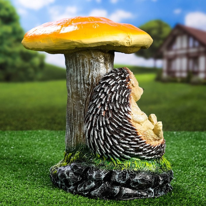 Садовая фигура "Ёж на боку под грибами" 24х28х32см