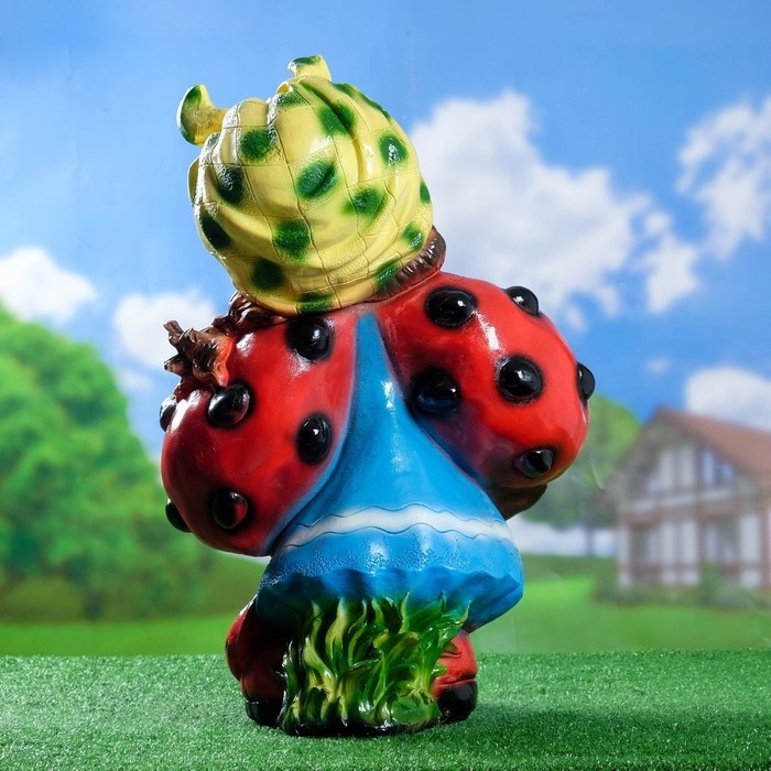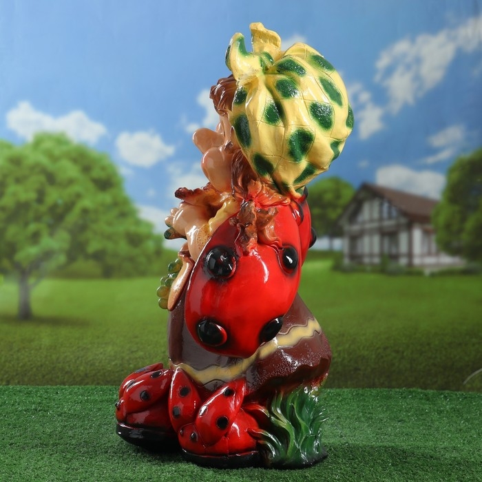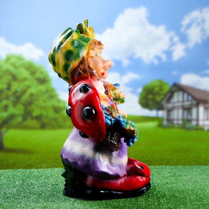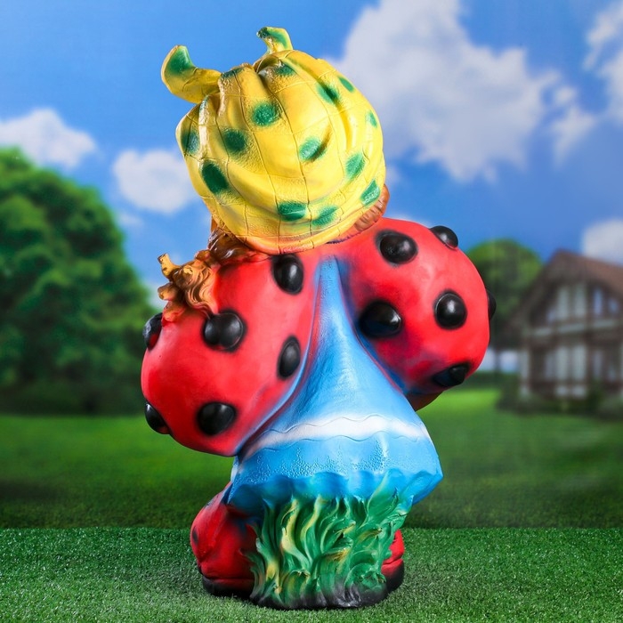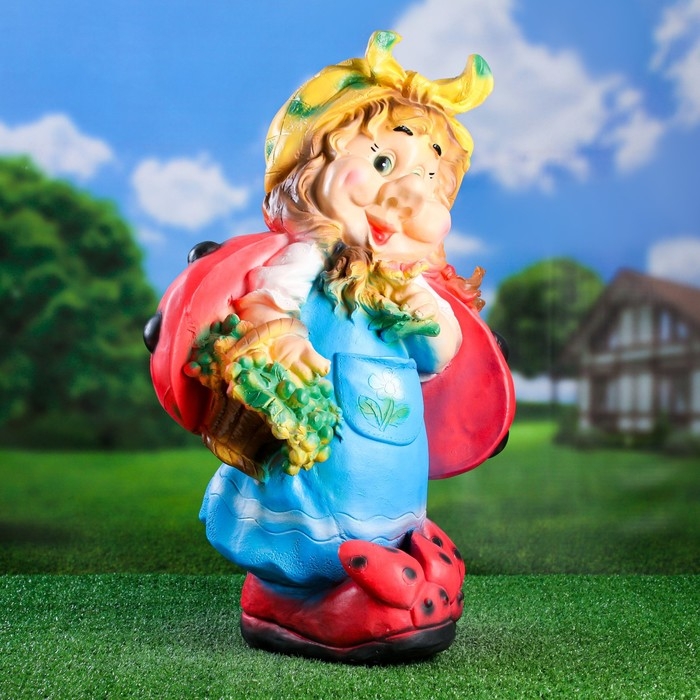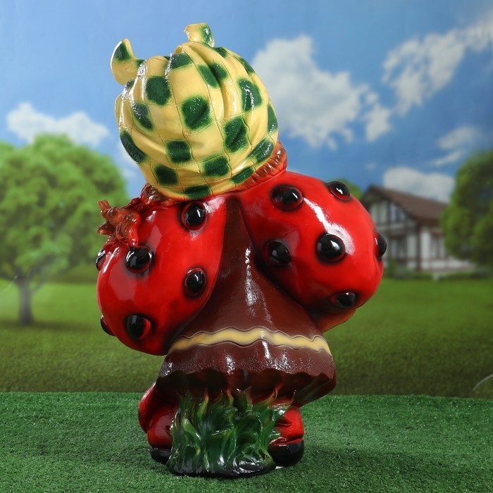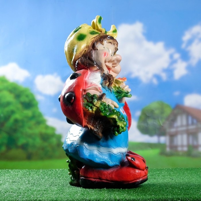 Садовая фигура "Гном девочка-божья коровка с виноградом" 44х21х64см
