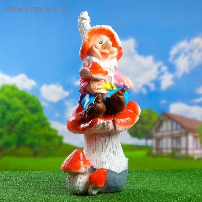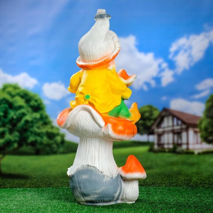 Садовая фигура "Гном мухомор на грибе", 71х33см