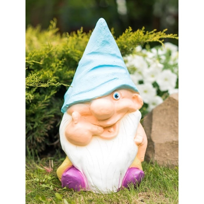 Садовая фигура "Гном простачек" голубой, 22х22х40см